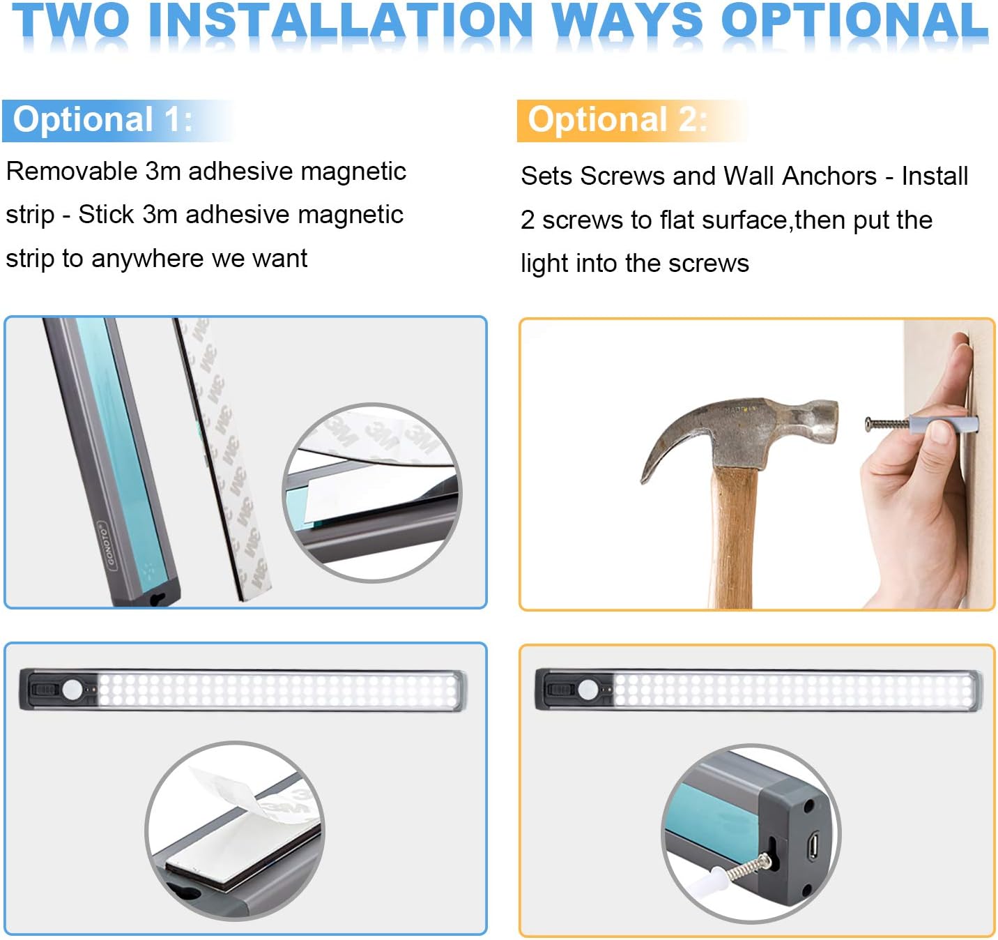 - πγ SUPER EASY TO INSTALL - Portable and Wireless γ-- Adhere the 3M magnetic strip (included) to anyplace we want like Kitchen,Closet,Cabinet,Wardobe,Hallway etc OR installed by Screw. wireless and removable charging using.check install place firstly. som place cannot use 3M sticker