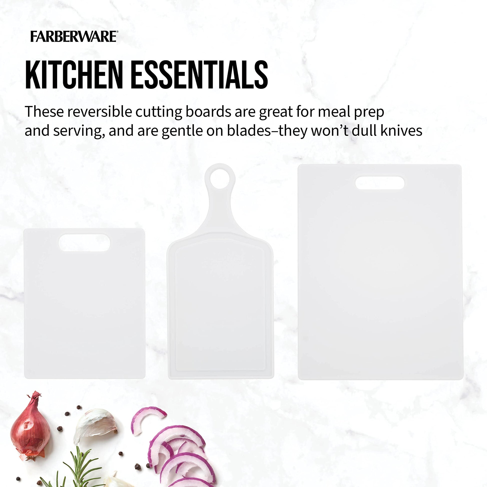 Farberware Plastic Cutting Board Set, Dishwasher- Safe Poly Chopping Board for Kitchen with Easy Grip Handles, Set of 3, White