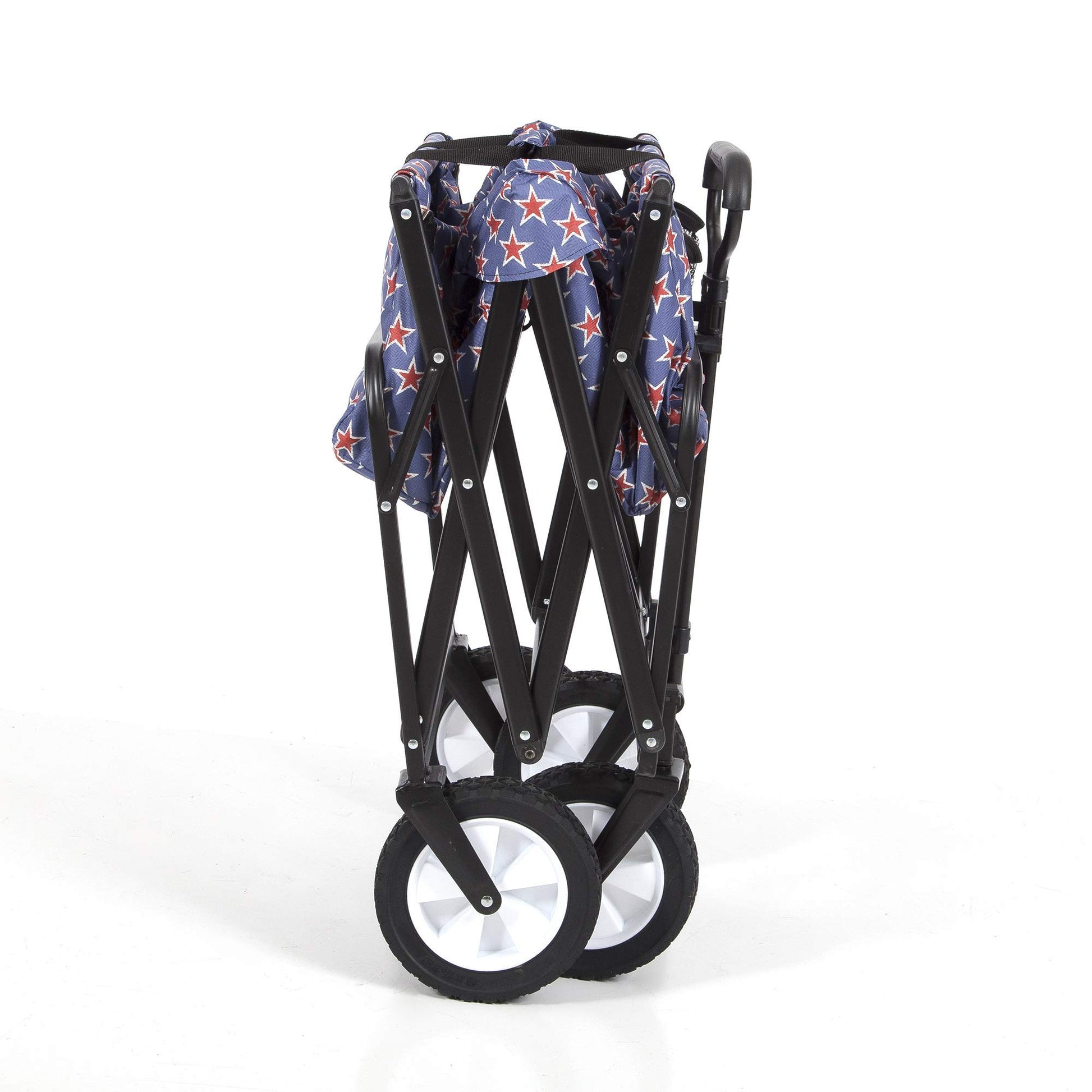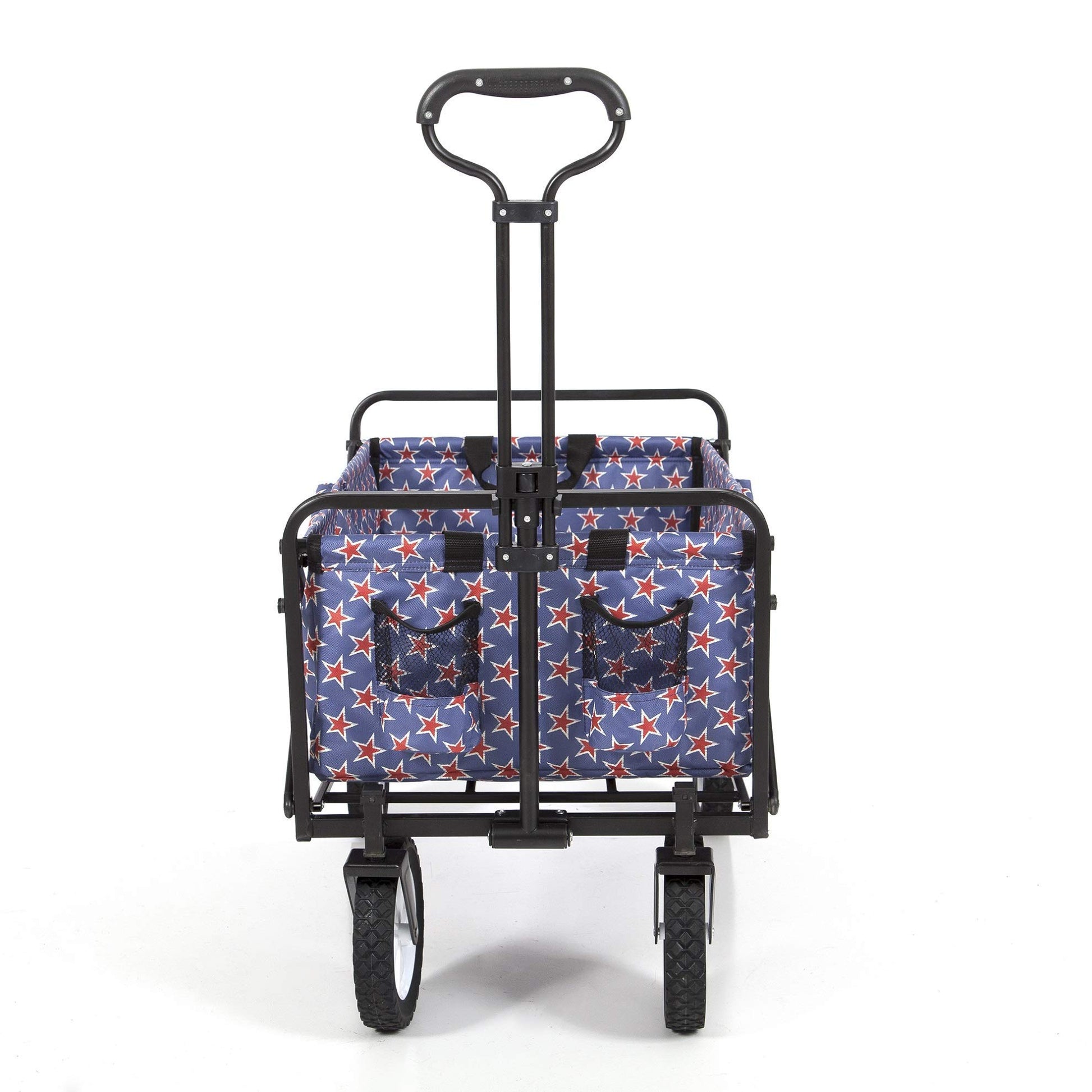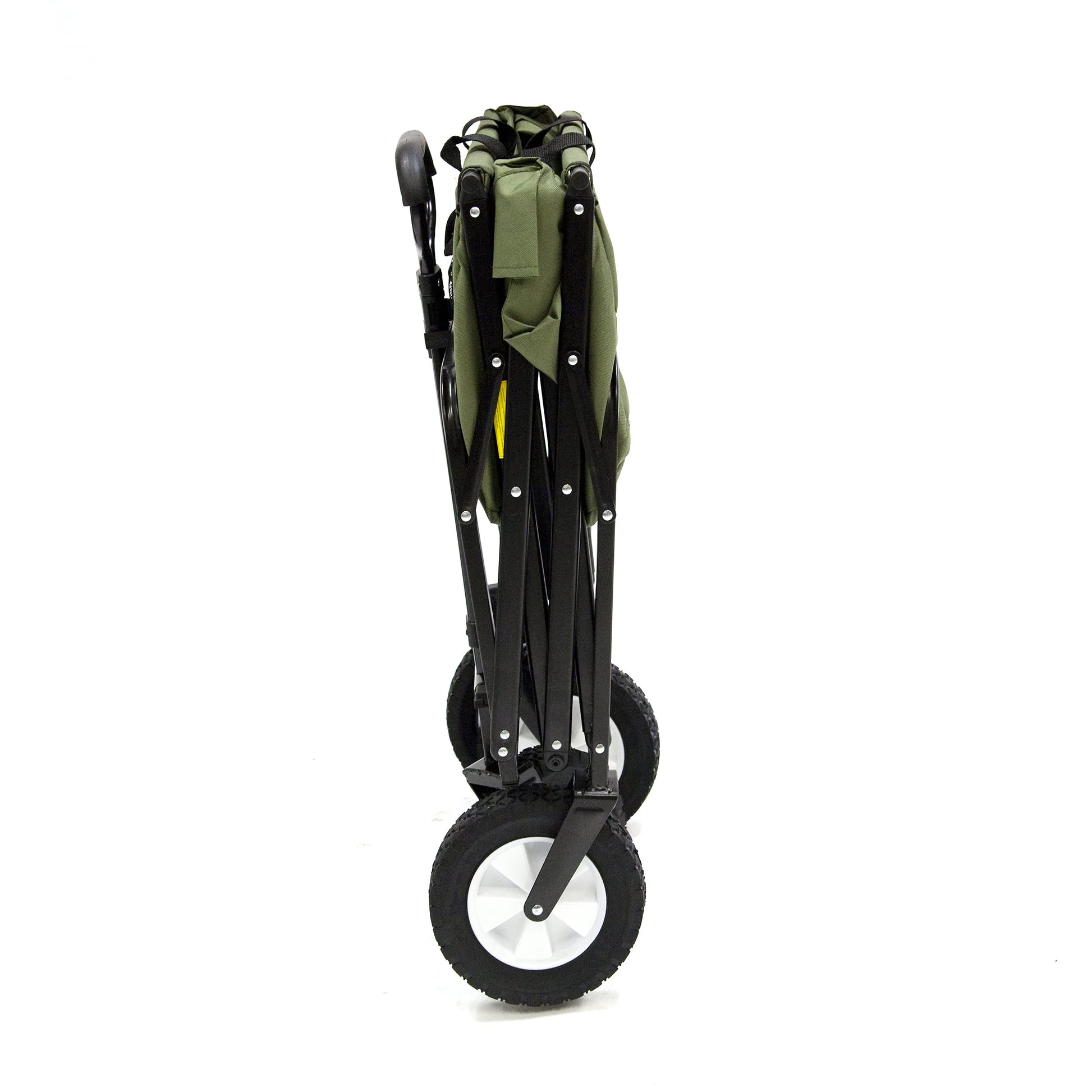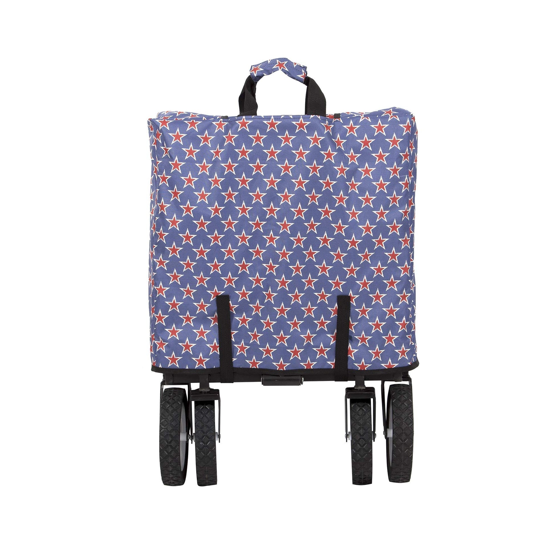 - CONVENIENT COMPACT STORAGE - Wagon folds to only 8" thick! Folded size approx. 29.5" x 20" x 8" and includes a convenient carry case. Weighs 24.5 Lbs.